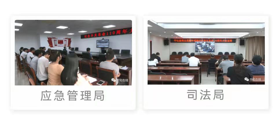 寧化縣融媒體中心、縣應急管理局、縣司法局、縣總工會、縣交通局、縣衛健局等部門也組織干部職工集中觀看了紀念辛亥革命110周年大會直播,大家全神貫注,深入學習領會習近平總書記重要講話精神。紛紛表示,將繼承和弘揚辛亥革命精神,為實現中華民族偉大復興的中國夢作出新的更大貢獻。