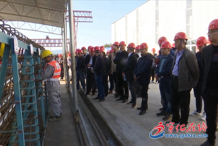 與會人員還到國道G356線寧化城關何家園至城郊鎮瓦莊村公路工程B標段施工現場參觀,了解該工地施工標準化建設、預制梁場、鋼筋加工廠、高架橋梁下部結構、智慧工地管理云平臺、黨支部建設等方面的內容。