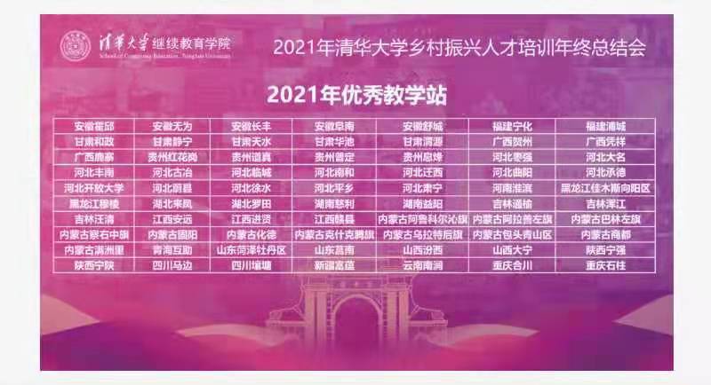 近日,在清華大學(xué)鄉(xiāng)村振興人才培訓(xùn)年終總結(jié)會上,縣委黨校榮獲2021年清華大學(xué)鄉(xiāng)村振興優(yōu)秀教學(xué)站,是福建省獲該獎項的2個教學(xué)站之一。