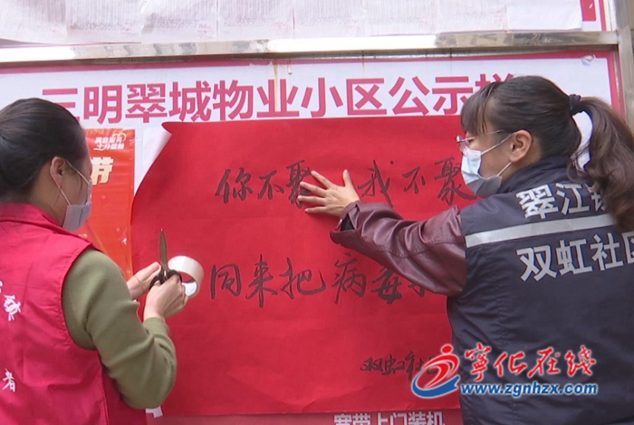 在寧化翠江鎮(zhèn)雙虹社區(qū),社區(qū)工作人員正在進(jìn)行認(rèn)真排查,勸導(dǎo)居民群眾做好自身保護(hù),并在小區(qū)內(nèi)張貼防疫知識(shí)宣傳單,讓小區(qū)居民共同做好疫情防控。同時(shí),工作人員在小區(qū)進(jìn)出口設(shè)置體溫監(jiān)測(cè)點(diǎn),當(dāng)發(fā)現(xiàn)異常時(shí),第一時(shí)間向社區(qū)報(bào)備,并對(duì)接疫情防控工作。