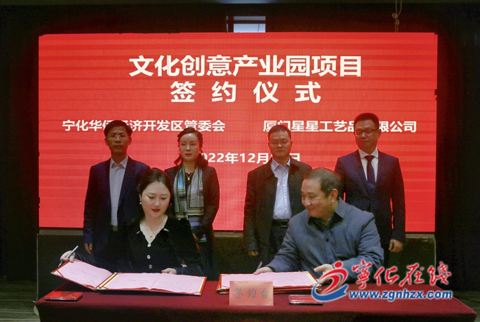 12月15日,寧化縣與廈門星星工藝品有限公司在客家國際舉行文化創(chuàng)意產(chǎn)業(yè)園項(xiàng)目簽約儀式。廈門星星工藝品有限公司業(yè)務(wù)副總黃珊瑚、行政副總劉子芳,縣委常委、副縣長張祖祿,副縣長饒浩出席簽約儀式。