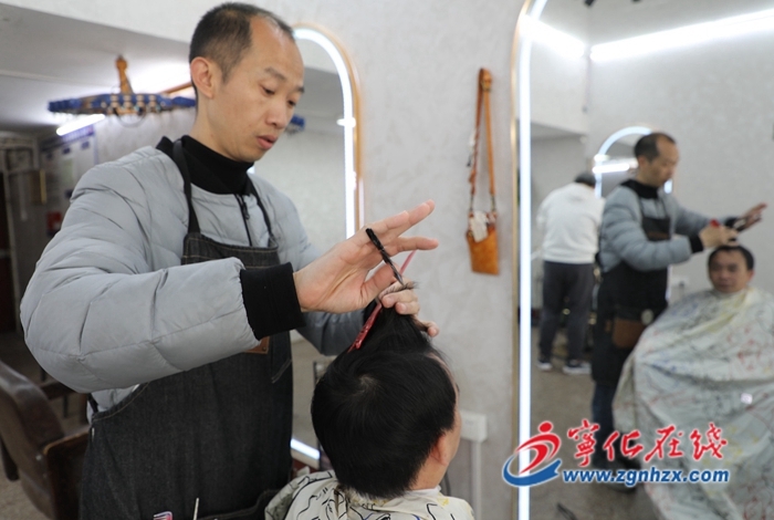 “吳師傅,請幫我理個發,還是照老樣子剪。”2月16日,寧化縣中環中路“型沙龍燙染工作室”內,老顧客張和明一落座,就對著前面那名瘦小的發型師說道,雙方顯然已十分熟悉。