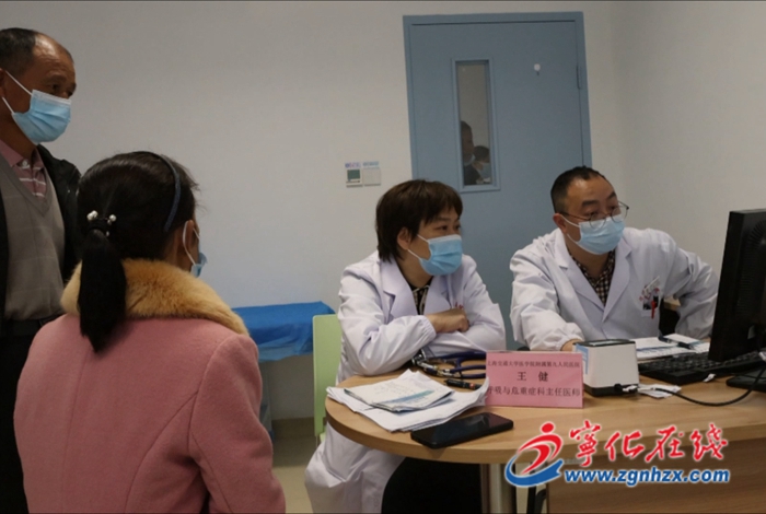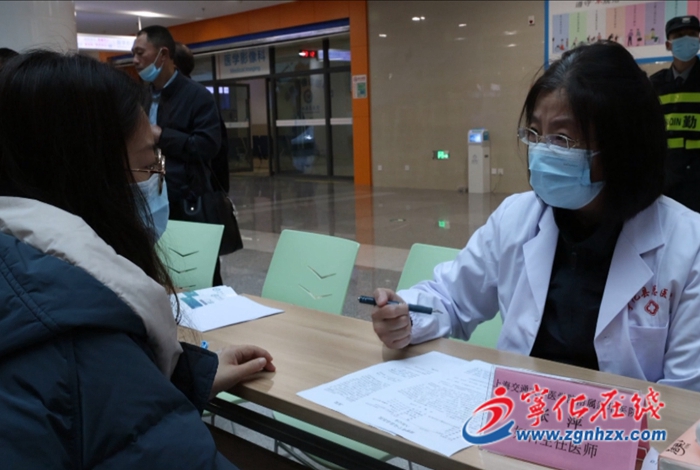 義診現(xiàn)場,市民們在咨詢臺填寫登記表后紛紛前往指定地點排隊等候?qū)<业膯栐\。針對市民帶來的相關(guān)病歷,上海專家與寧化縣總醫(yī)院醫(yī)師進行充分討論。