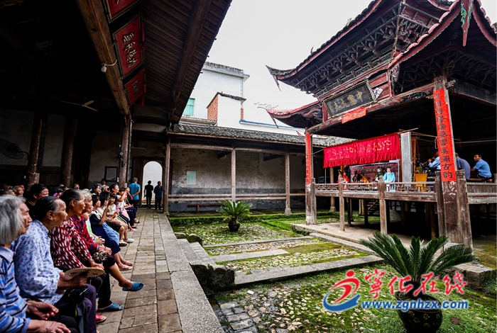 夜幕降臨,華燈初上,寧化縣曹坊鎮下曹村敬湖公祠前的廣場人頭攢動,臺上板凳龍、杯花說唱、客家山歌、詩朗誦、舞蹈、音樂快板等節目輪番上場,博得臺下陣陣熱烈的掌聲。