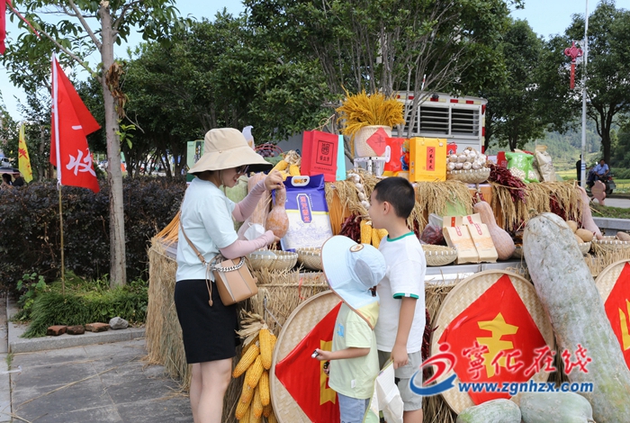 活動現場人頭攢動,一派豐收喜悅景象。不僅有農副產品企業代表的產品,當地村民也拿出了自家的特色農產品,河龍貢米、薏米、稻花魚干等農特產品琳瑯滿目,讓人目不暇接。