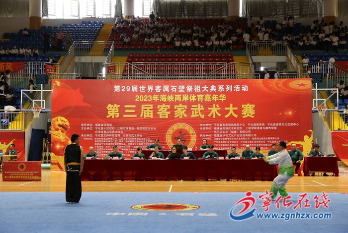 10月5日,2023年海峽兩岸體育嘉年華第三屆客家武術大賽在寧化縣體育中心開賽,吸引了來自臺灣、福建、江西等地的武術團體、武術協會等33支隊伍共500余名武術愛好者參加比賽。福建省武術協會會長甘式光出席開幕式,縣委常委、統戰部部長李恭清在開幕式上致辭,省市有關部門領導,縣領導周文慶、周美華等出席開幕式。