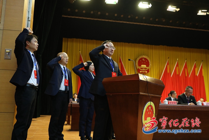 大會舉行了莊嚴的憲法宣誓儀式,新當選的寧化縣監察委員會主任、縣人大常委會副主任、寧化縣人大常委會委員向憲法宣誓。
