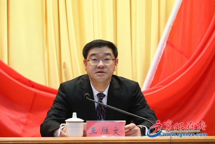 全會由縣委常委會主持,縣委書記王勝文講話。