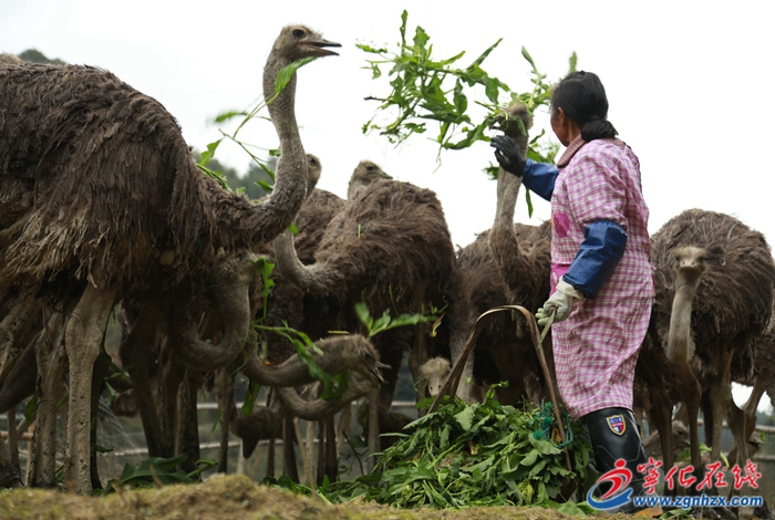 飼養鴕鳥不僅為陳振生帶來了可觀的經濟效益,還為周邊村民提供了就業增收的機會。“主要聘請了周邊的農戶來幫忙喂養,工資一天有一百多,一個月3000多塊錢。”陳振生說。