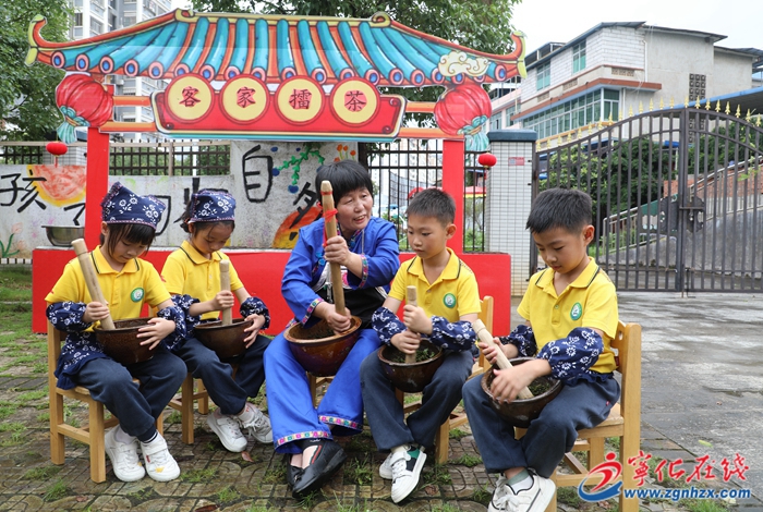 省級(jí)非物質(zhì)文化遺產(chǎn)寧化客家擂茶制作工藝傳承人走進(jìn)幼兒園,講解了擂茶食材的種類、制作技巧、擂茶風(fēng)俗等知識(shí),與師生一起感受客家擂茶的獨(dú)特魅力。在老師的指導(dǎo)下,孩子們把青草藥放入擂缽,握住擂棍,舂搗、旋轉(zhuǎn),大家分工協(xié)作,互相配合,體驗(yàn)了擂茶的制作工藝。“我今天和好朋友一起做了寧化擂茶,我覺得制作的過(guò)程很有趣,而且很好吃。”小朋友巫丹楊激動(dòng)地說(shuō)道。