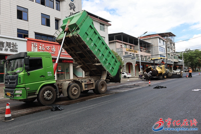 7月31日,在安樂(lè)鎮(zhèn)集鎮(zhèn)“白改黑”項(xiàng)目施工現(xiàn)場(chǎng),機(jī)器轟鳴,施工人員和工程車(chē)輛緊密配合,有條不紊地進(jìn)行著瀝青攤鋪?zhàn)鳂I(yè)。