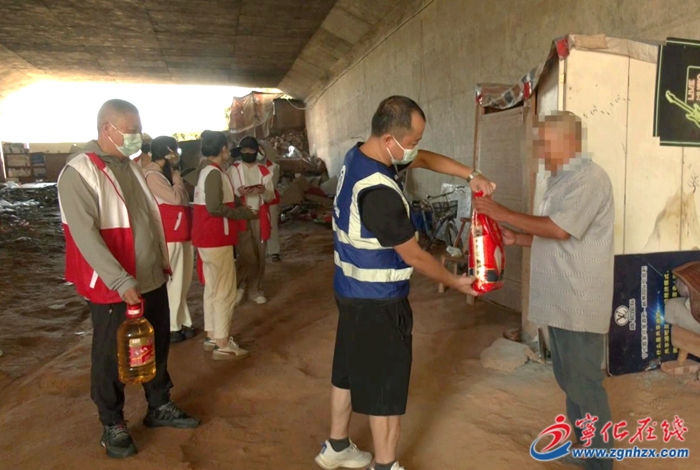 民政局工作人員及志愿者先后前往化肥廠、邊貿橋底、西門沙壩園等地,為臨時遇困人員派送愛心清涼包,積極勸導他們前往救助站尋求幫助,對于勸導后不愿去救助站的,救助站尊重他們的救助意愿,為他們提供救助引導卡,引導他們在需要幫助時撥打電話或前往救助站尋求幫助。