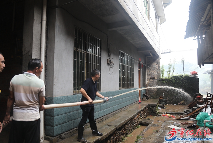 在這次暴雨中,永躍村溪背組是全鎮(zhèn)受災(zāi)較為嚴(yán)重的村,不少村民房屋過水被淹。村黨支部書記寧中華帶領(lǐng)村委成員第一時(shí)間奔赴村民家中,送上泡面、礦泉水等物資,和村民一起清理淤泥、清洗地板。
