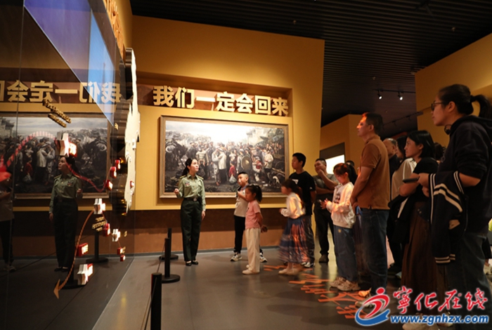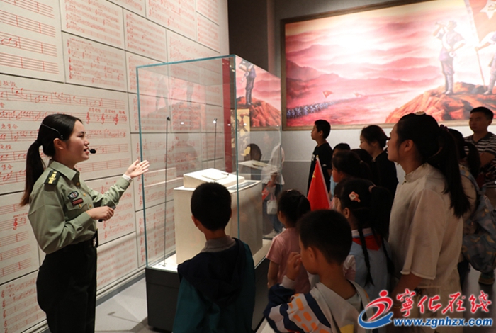 “在國(guó)慶這個(gè)特殊的日子,為了讓廣大游客更好的重溫革命歷史,我們安排了定時(shí)免費(fèi)講解的服務(wù)。同時(shí)在以我館鎮(zhèn)館之寶,中國(guó)工農(nóng)紅軍軍用號(hào)譜為引子策劃的專題展程安排了定點(diǎn)講解,讓來(lái)到這里的游客通過(guò)可看、可聽(tīng)、可游戲、可互動(dòng)的形式,更好的重溫那段聞號(hào)而動(dòng),一往無(wú)前的崢嶸歲月。”副館長(zhǎng)林夢(mèng)佳介紹。