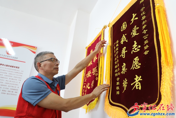 沒想到失聯(lián)這么久了,我們還能找到廣東汕頭的親人……”10月19日,寧化縣城南鎮(zhèn)茜坑村七旬老人吳水珠的女兒雷淑蘭將題有“大愛志愿者,圓我尋親夢(mèng)”字樣的錦旗,交到寧化縣如夢(mèng)令公益協(xié)會(huì)會(huì)長張銀珠手中,感激之情溢于言表?!皦?mèng)歸潮汕”寧化助尋分隊(duì)隊(duì)長范錄盛鄭重地將錦旗掛上墻,為自己的第9次成功尋親畫上了一個(gè)圓滿的句號(hào)。