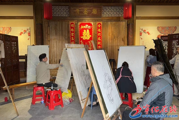 畫(huà)家們先后到石壁鎮(zhèn)客家書(shū)院、客家祖地、陳塘紅軍醫(yī)院等地探索當(dāng)?shù)胤沁z項(xiàng)目及傳承人,牌子鑼鼓、木活字印刷術(shù)、客家采茶戲、客家擂茶等非遺文化傳承人熱情地向藝術(shù)家們展示自己的絕活兒,每到一處,大家都進(jìn)行了記錄和寫(xiě)生創(chuàng)作。