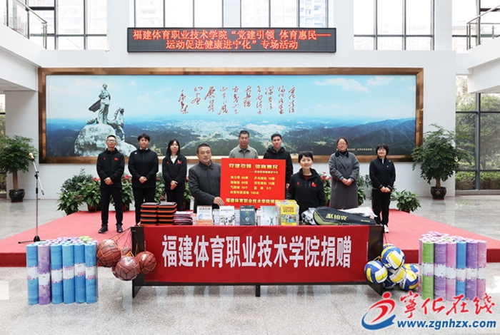 11月21日,福建體育職業技術學院在寧化開展“黨建引領 體育惠民——運動促進健康進寧化”專場活動。福建體育職業技術學院黨委書記鄒志紅,副縣長韓勝出席捐贈儀式。