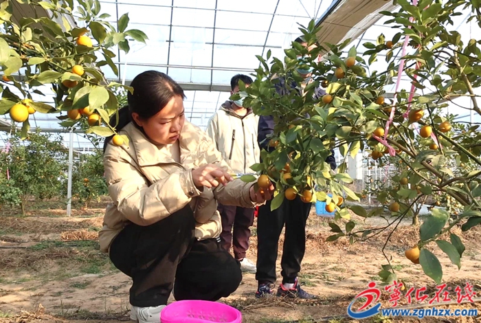 “今年剛剛投產(chǎn)的脆蜜金柑三代口感很好,種植面積六、七畝左右,共500余棵樹(shù)。十一月份到正月是采摘季,碰上周末高峰期收入會(huì)在7000~8000元。”采摘基地負(fù)責(zé)人周國(guó)元介紹。