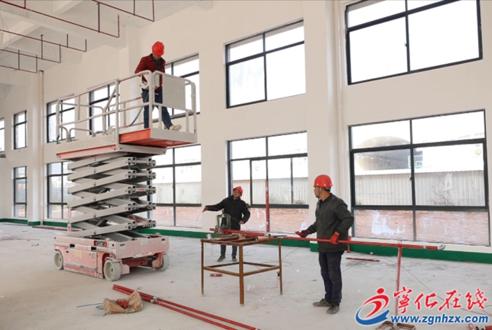 1月8日,在寧化縣薏米·河龍貢米精深加工項目建設現場,工人正進行室內水電、消防管道安裝等工作。