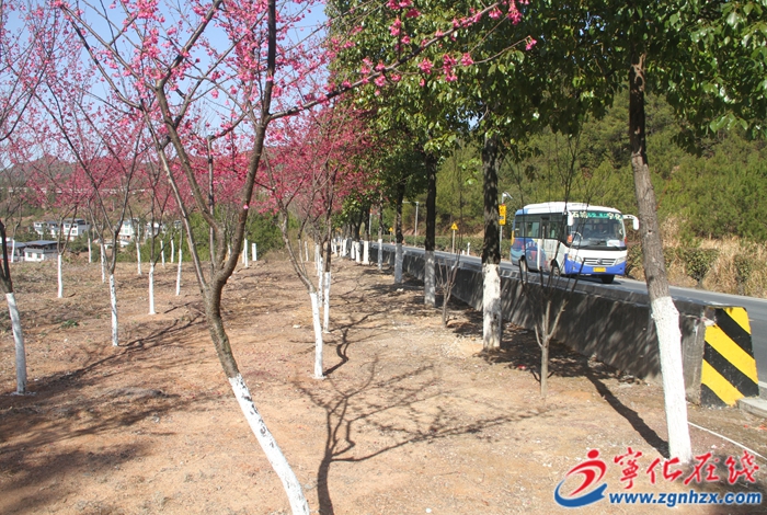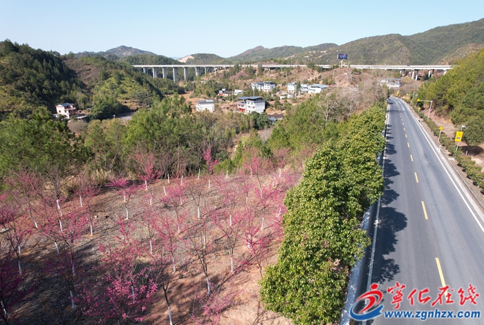 新春剛至,寧化G356線五里亭路段熱鬧起來。道路兩旁,粉白的福建山櫻花迎春盛放,綿延成一條爛漫 “花路” ,讓過往車輛穿梭在春日畫卷中。