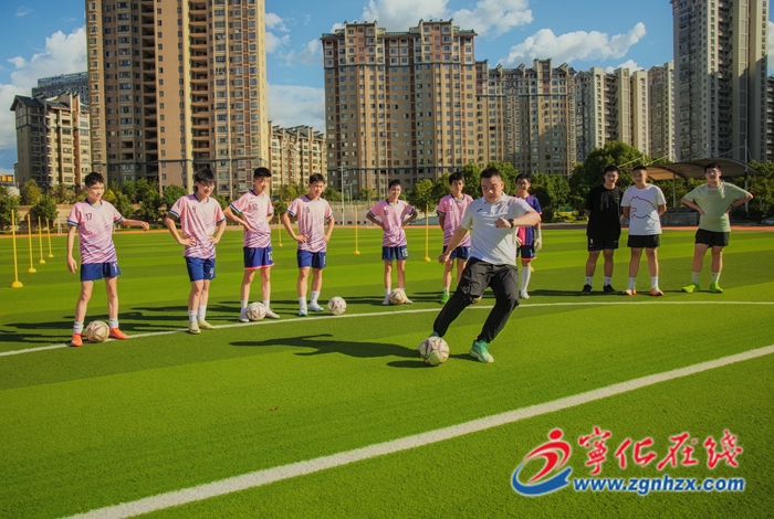 訓練場上,溫志偉示范每一個動作要領,耐心解答學生的問題。除了足球技能的指導,他注重學生的個性化發展,根據每個人的特點和優勢,制訂針對性訓練計劃,培養創造力和戰術思維。“我愛踢足球,它不僅讓我更健康了,還幫助釋放了學習壓力,學習效率提高了?!本拍昙壞猩鷦╆栒f。