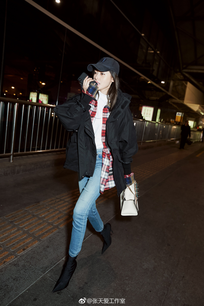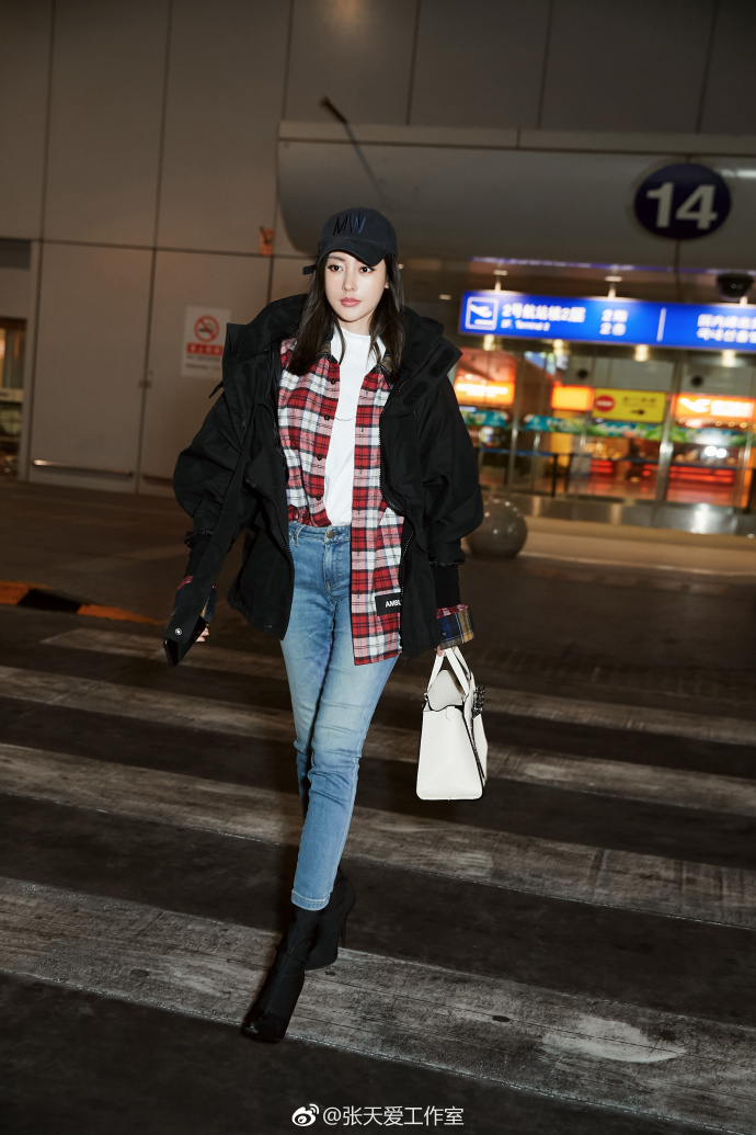 近日,人氣女演員張天愛一組機場照曝光。照片中,張天愛身著黑色寬松外衣,內搭紅色格襯衫,下身淺色牛仔褲搭配黑色高跟鞋,帥氣十足,大長腿格外吸睛。網友紛紛喊話:“又帥又美的小姐姐請給我來一打”。