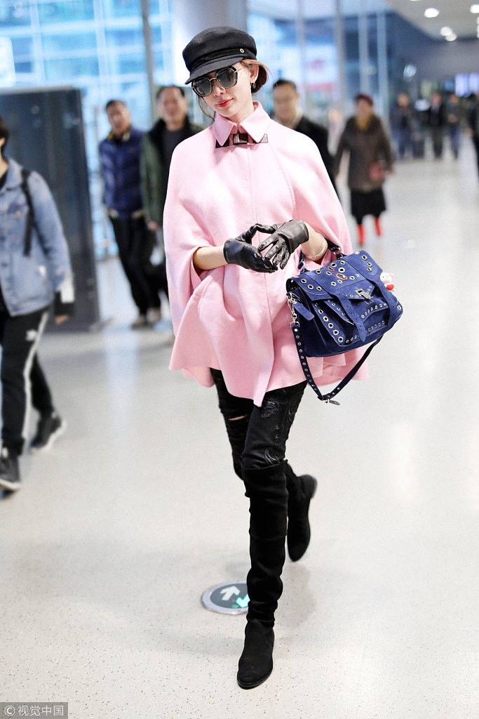 2018年1月10日,上海,林志玲現(xiàn)身機(jī)場。 林志玲穿粉嫩斗篷裝美得冒泡。