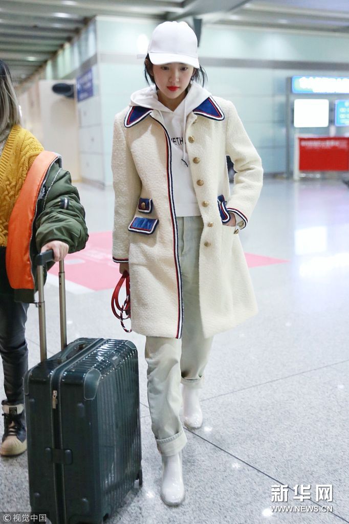 唐藝昕現身機場,衛衣搭牛仔褲玩轉街頭風。