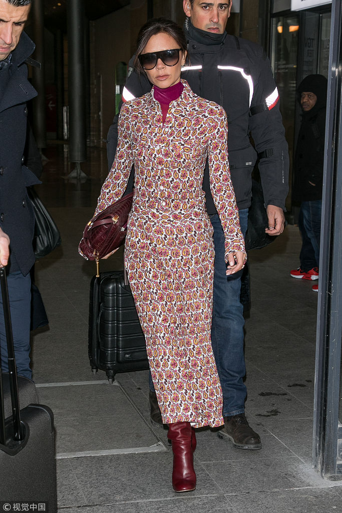 當地時間2018年1月17日,法國巴黎,明星夫妻分別現身。“貝嫂”一身花衣氣場全開,小貝還是帥大叔。