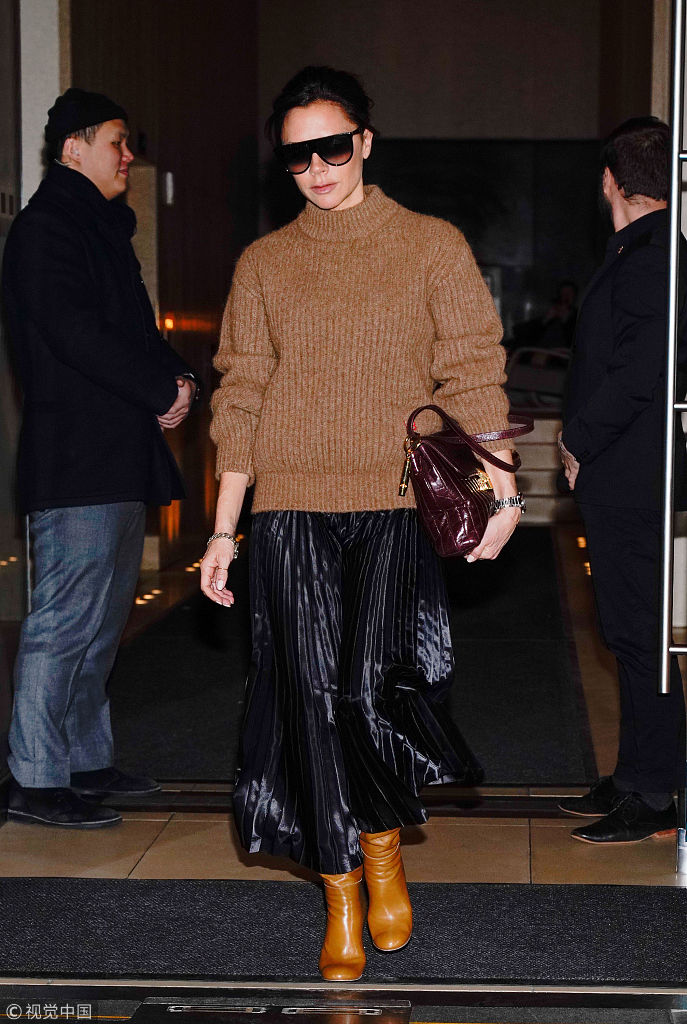 維多利亞黑色百褶裙 穿毛衣走出T臺(tái)范兒