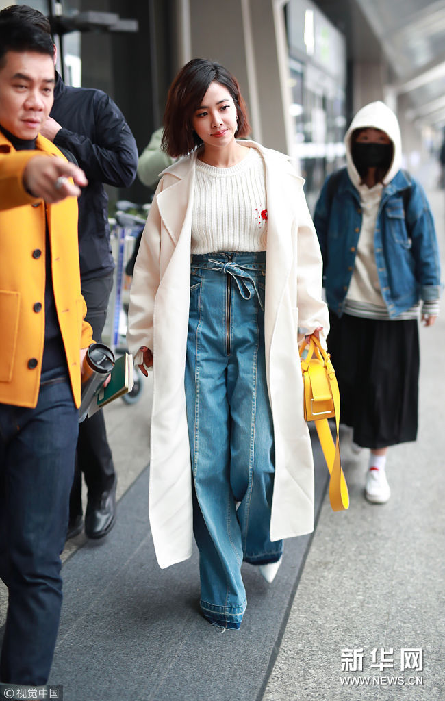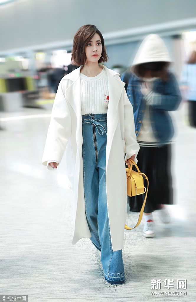 蔡依林白衣清新出行 高腰闊腿褲造型加分