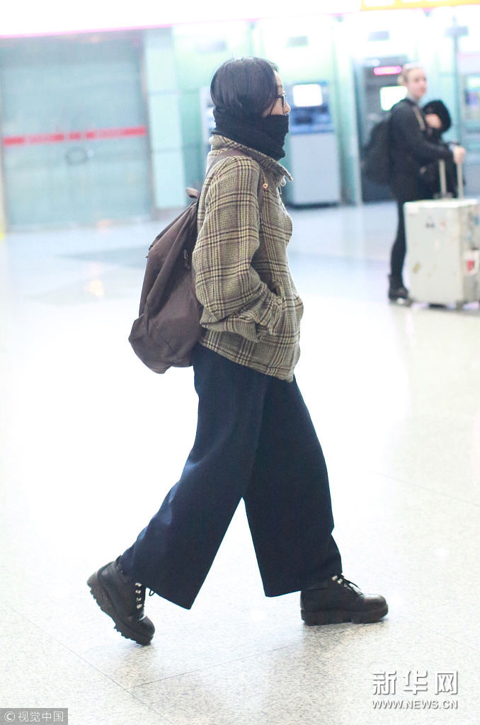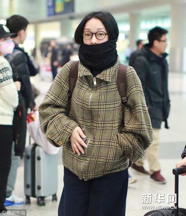 2018年3月11日訊,北京,周迅素顏現身機場,黑色圍巾包裹 一身樸素打扮。