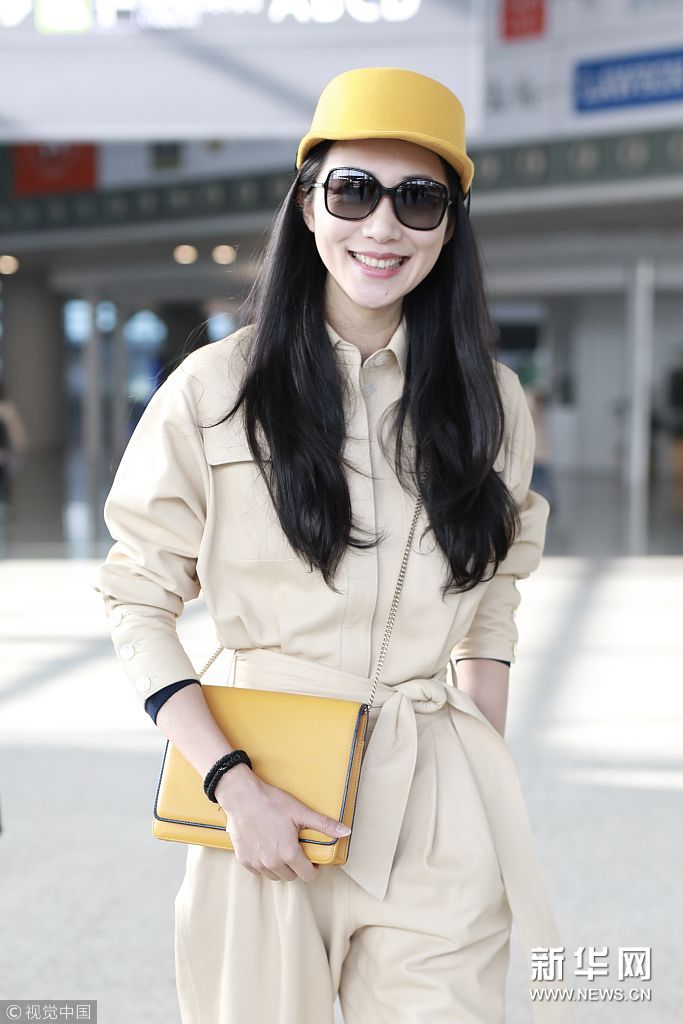 2018年3月10日,上海,韓雪現(xiàn)身機(jī)場,穿米色連體服為早春增添活力。
