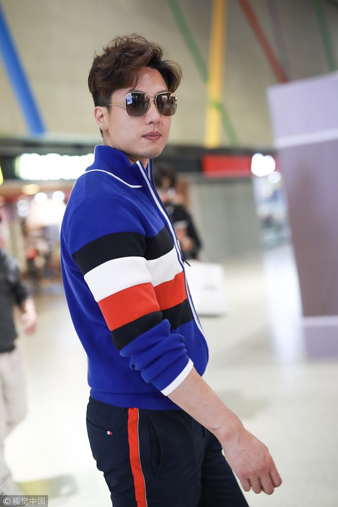 上海,凌瀟肅現(xiàn)身機(jī)場(chǎng),穿條紋運(yùn)動(dòng)裝 墨鏡遮面難掩好心情。