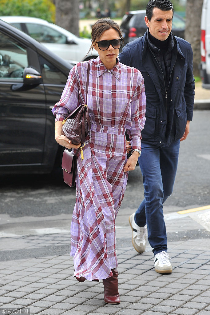 當(dāng)?shù)貢r(shí)間2018年3月28日,巴黎,貝嫂維多利亞·貝克漢姆(Victoria Beckham)現(xiàn)身參觀比利時(shí)著名時(shí)裝設(shè)計(jì)的作品展,格子裙配小紅鞋夠青春。