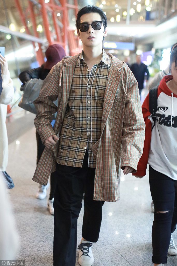 2018年3月30日,北京,楊洋現身北京機場,大背頭墨鏡遮面,插兜疾行。