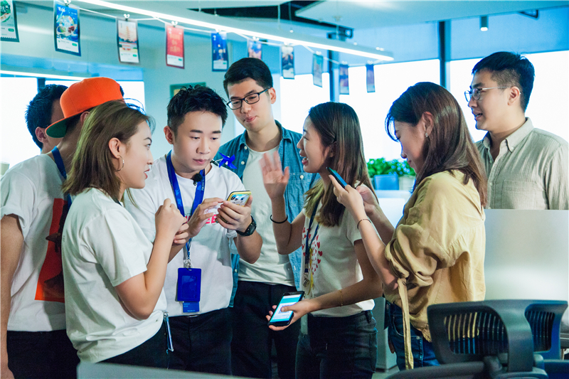 與走街串巷的劉維和敢姑娘不同,楊迪和小菌化身“一日員工”,在騰訊濱海大廈完成了全部拍攝。旁聽過微視團(tuán)隊關(guān)于舞蹈類短視頻的小課堂,楊迪和小菌活學(xué)活用,跟騰訊員工就地拍起了流行的“香水舞”。他們還在騰訊空間見證了QQ、微信的發(fā)展史,和機(jī)器人打冰球,花式體驗當(dāng)下最前沿的科技成果。