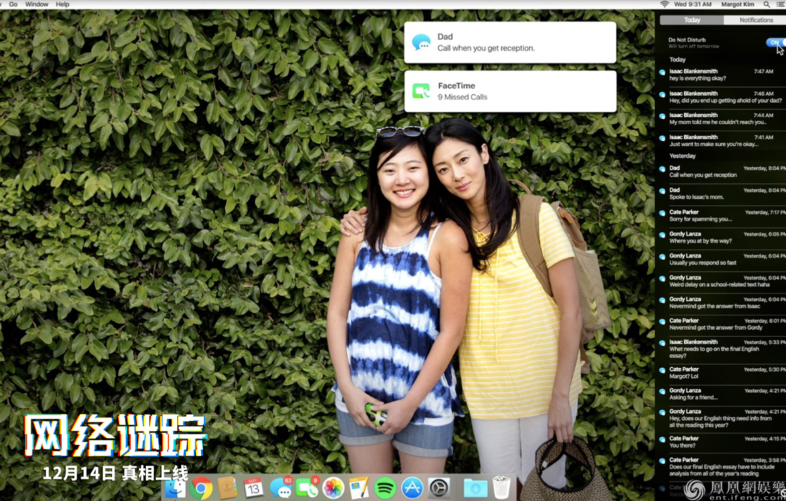 在滿屏打開的多屏界面中,除了推進劇情的主線,還藏了無數讓人容易忽略的小細節。除了史上腦洞最大的一條科幻彩蛋,電影在女兒的Facebook頁面一閃而過的熱門標題,用角色名稱致敬了同為“桌面電影”的《解除好友》;父親的郵件里甚至有一封“劇透”了真兇的信,正是該片的編劇所發送;彼得跟大衛要菜譜時因有人敲門而掛掉電話,這個人正是女兒瑪格,而后父親翻閱女兒的短信界面也顯示了失蹤當晚她確實跟叔叔彼得約好了吃飯……每一秒都是細節,看一遍絕對不夠。