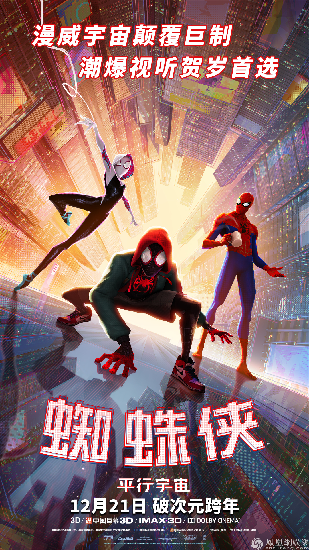 《蜘蛛俠:平行宇宙》將于12月21日以3D、中國巨幕3D、IMAX3D、杜比全景聲制式登陸內地大銀幕。