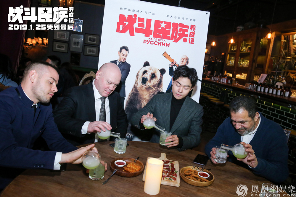 即將在1月25日全國(guó)上映的愛(ài)情喜劇電影《戰(zhàn)斗民族養(yǎng)成記》中的:“新晉女婿”董暢、“寡頭爸爸”維塔利·哈耶夫、“機(jī)靈鬼羅馬”謝爾蓋·切爾科夫等主創(chuàng),近日一同現(xiàn)身三里屯酒吧,開(kāi)啟戰(zhàn)斗開(kāi)年酒局,上演酒量比拼。酒酣時(shí),羅馬即興海報(bào)涂鴉展現(xiàn)搞怪畫(huà)風(fēng),寡頭爸爸自拍展現(xiàn)賣萌一面。酒吧內(nèi)不少游客認(rèn)出了“戰(zhàn)斗男團(tuán)”,紛紛求合影,直呼“戰(zhàn)斗民族友人太有趣,待電影早日上映”!