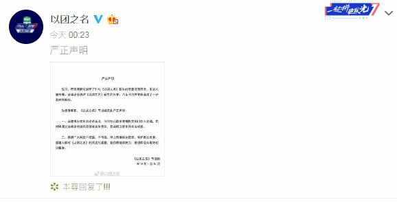《以團之名》官方發聲明:將對惡意誹謗者追責