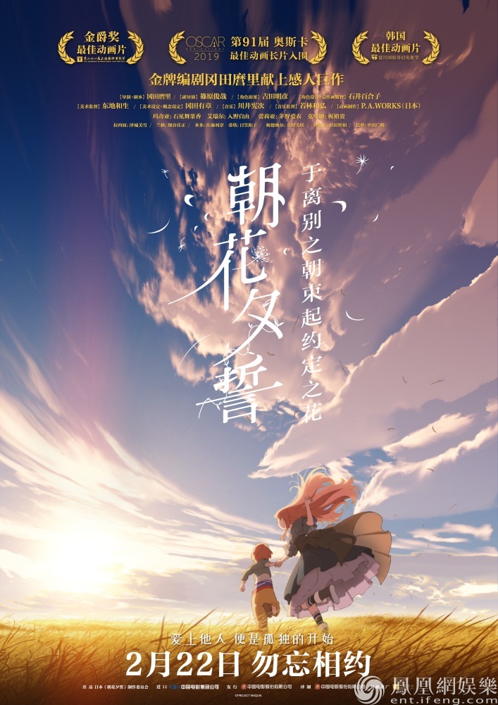 畫風唯美清新的日本動畫電影《朝花夕誓》2月22日全國上映,影片即將于2月17日,本周日在北京,成都,廣州,杭州,上海,深圳,武漢,西安八大城市開啟點映活動。觀眾可以提前欣賞到這部今年最令人期待的動畫佳作,以下的五大看點解析將詳細為你輕訴“人生離歌”。