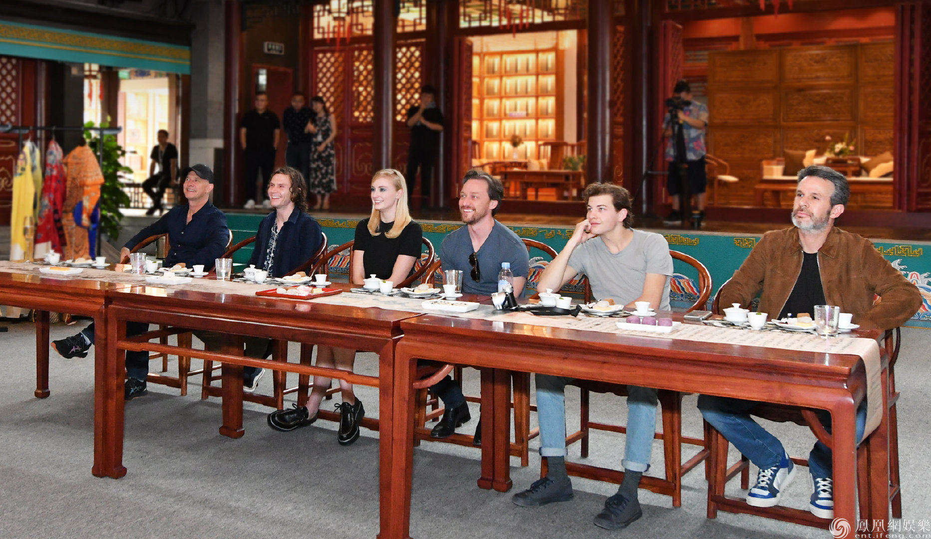 經歷了首映禮的狂歡,5月30日,導演西蒙·金伯格、制片人哈奇·帕克、主演詹姆斯·麥卡沃伊、蘇菲·特納、泰伊·謝里丹和伊萬·彼得斯繼續宣傳,開啟了體驗中國傳統文化之旅,他們來到雕梁畫柱、古香古色的老北京戲樓,現場品嘗老北京小吃,欣賞經典京劇名段。演出結束后,幾位主創還興奮地上臺與粉墨亮相的京劇角色合了影——這些京劇角色與幾位主演在《X戰警》中飾演角色的特點頗為相似:擁有“X教授”一般智慧的“諸葛亮”;戴鳳冠的“楊貴妃”,擁有中國天眼的“二郎神”,和一個跟頭十萬八千里速度極快的“孫悟空”。值得一提的是,蘇菲還穿上了特地為她準備的鳳凰衣飾,中國紅的鳳凰元素在她身上格外耀眼。一行人不僅對京劇的獨特魅力大加贊賞,還認真和老師學習京劇身段,誠意滿滿又趣味十足。
