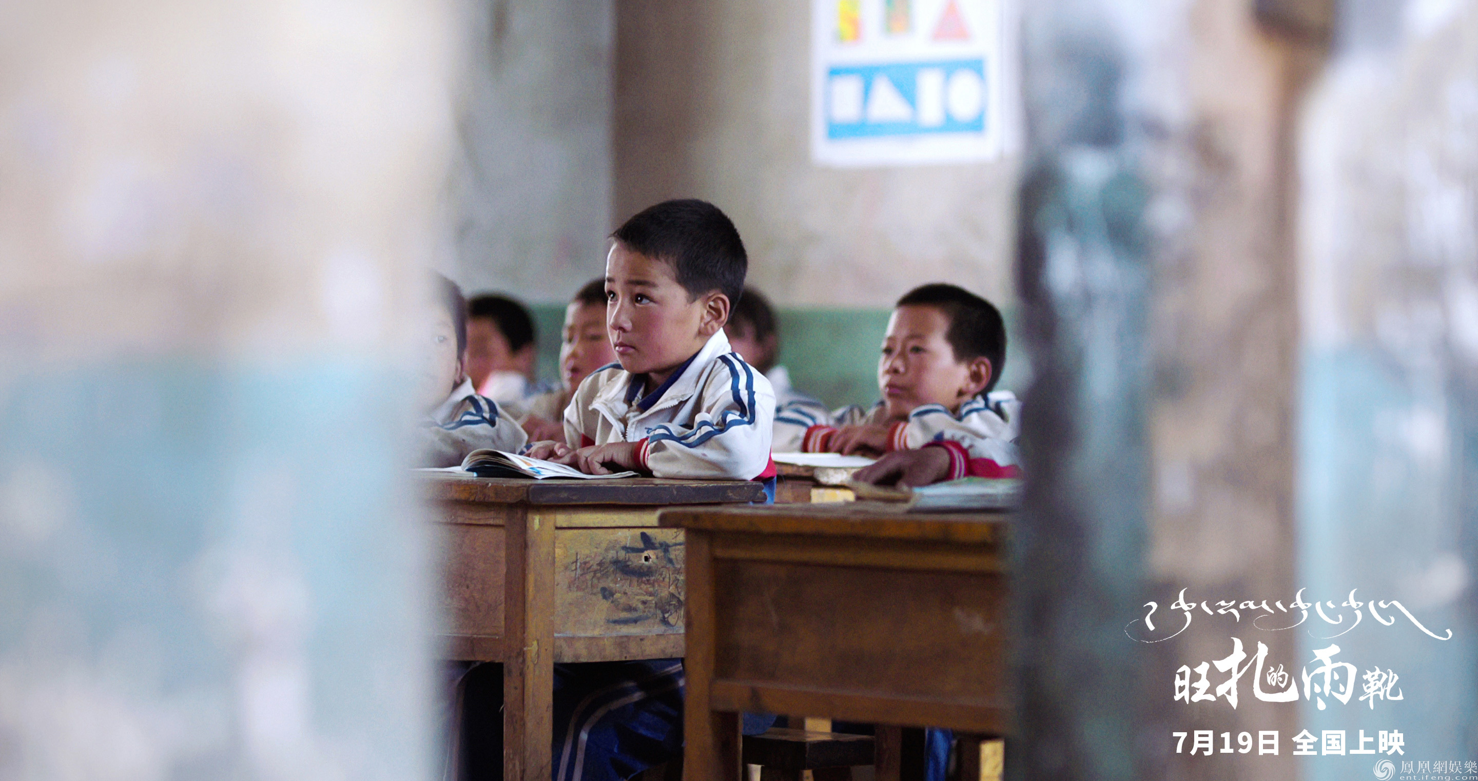在最新曝光的定檔海報中,明亮的陽光灑在旺扎和拉姆身上,畫面清新純凈。旺扎身在室外,他透過教室的窗往室內看去。窗戶將室內室外割裂成兩個空間,一明一暗,有如旺扎期盼愿望實現時明明滅滅的童年心事。電影《旺扎的雨靴》故事圍繞這個孩子展開,家里并不寬裕的旺扎希望能夠擁有一雙屬于自己的雨靴,但這個愿望的實現充滿了孩子難以克服的坎坷。《旺扎的雨靴》整體色調清新柔和,導演為觀眾呈現了青海藏區獨具一格的自然景色,蒼翠的綠意和湛藍的天空定能為你燥熱的心靈降溫。