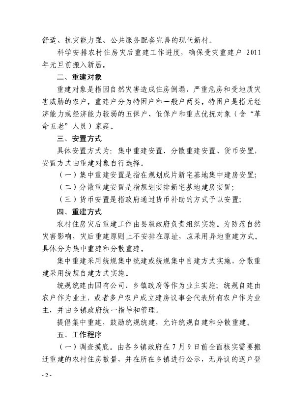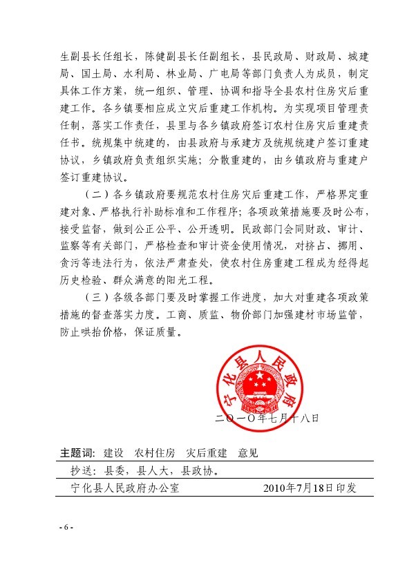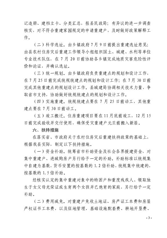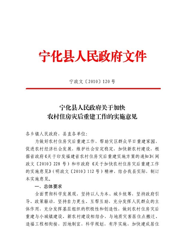 寧化縣人民政府關于加快農村住房災后重建工作的實施意見
