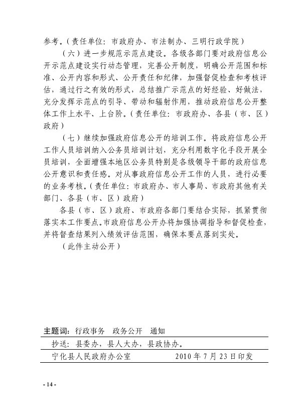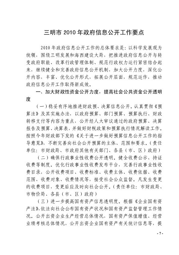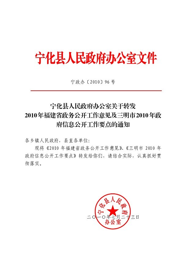 轉發2010年福建省政務公開工作意見及三明市2010年政府公開信息工作要點的通知
