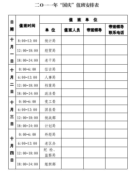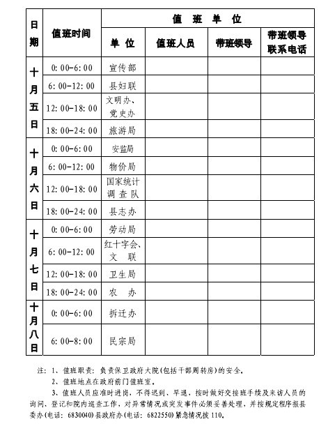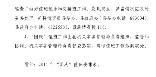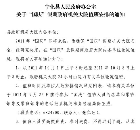 國慶放假政府機關大院值班安排通知