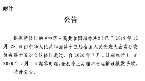 寧化縣林業(yè)局關(guān)于取消木材運(yùn)輸許可審批的公告