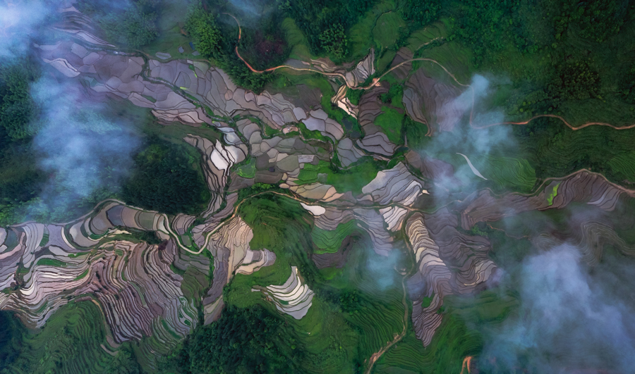 獲獎作品:《俯瞰煙雨大洋梯田》