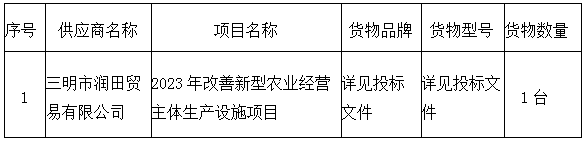 2023年改善新型農業經營主體生產設施項目 成交公告